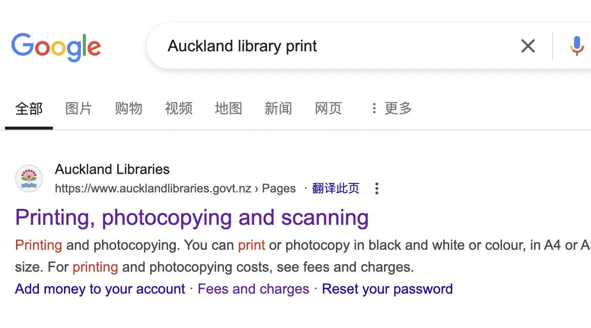 然后打开浏览器先搜索auckland library print