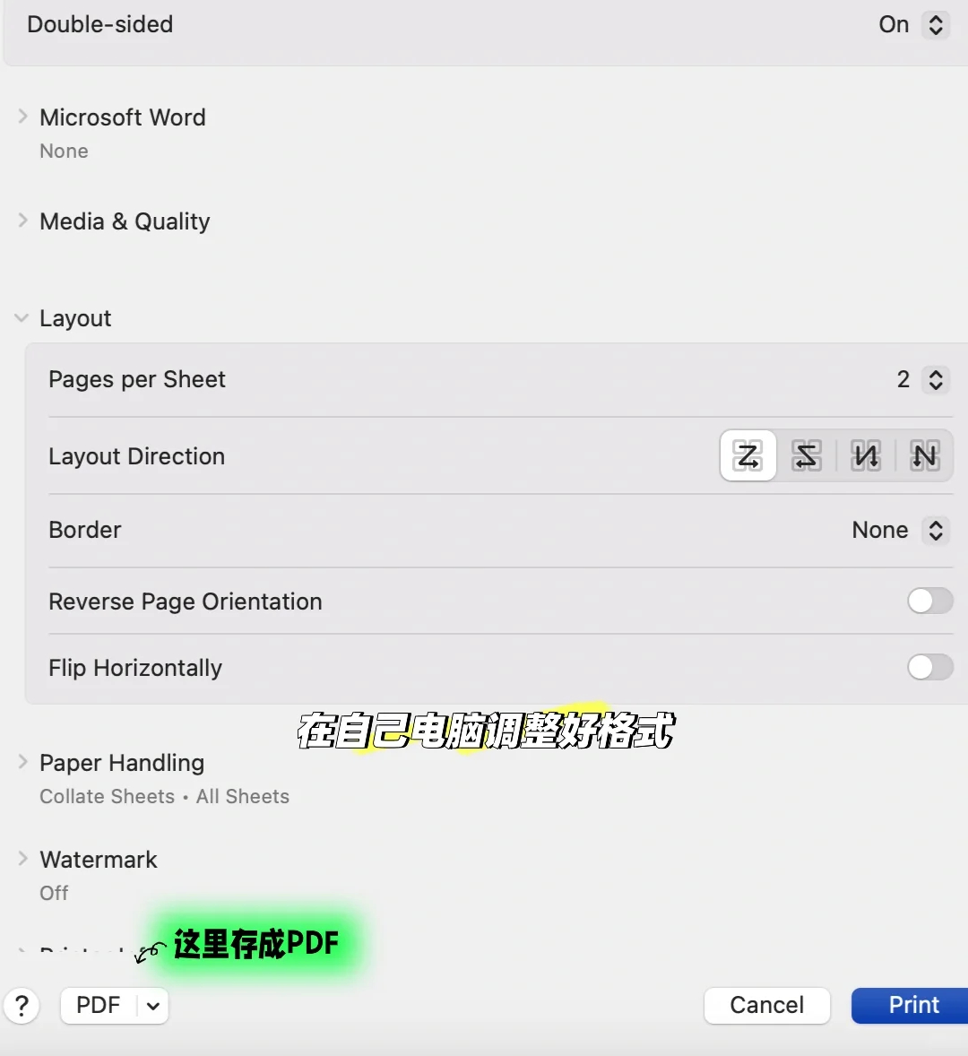 今天重点分享有图书卡的流程。打开网页,用图书卡信息登陆到打印页面 点击web print——》上传自己的文件,注意这里传上去的文件是已经调整过格式的,打印机只能选择是黑白彩色,单面还是双面。因为我打印需要缩印两页合成一页,这里就操作不了, 我就在自己电脑上选择一个打印机,然后调整好我需要的格式,转换成需要格式的pdf( 见图) 然后 在图书馆的 web print 上直接上传这个文件就好!文件大小限制100MB~