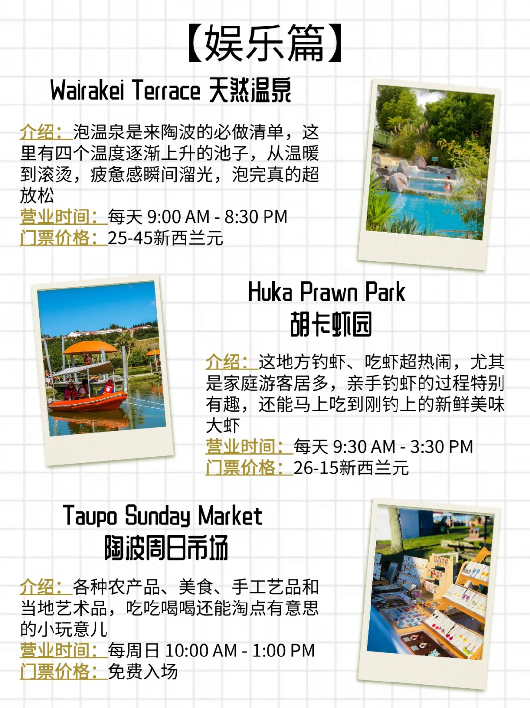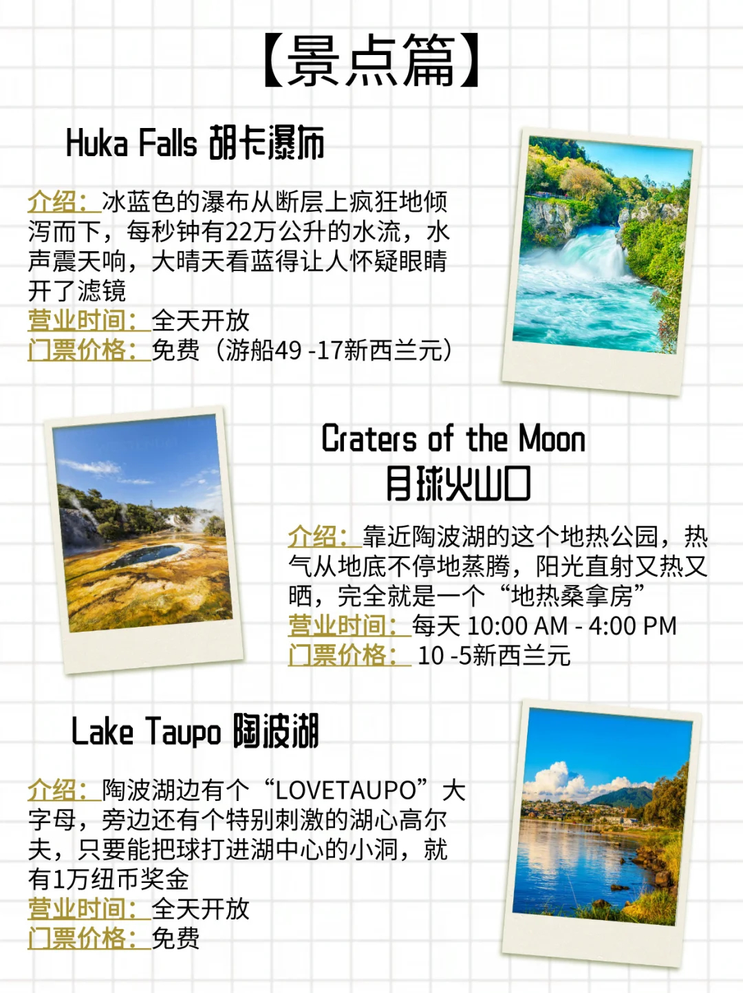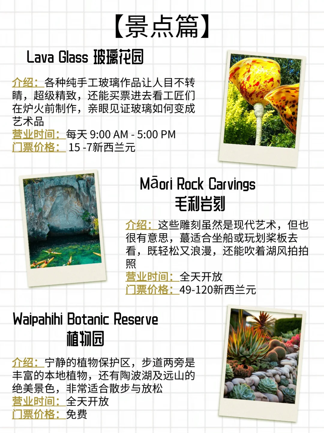 在北岛陶波旅游时,有几个不容错过的景点与美食推荐,跟我来了解一下! 胡卡瀑布的美丽无与伦比,水流湍急,冰蓝色的水面让人心旷神怡。接下来是湖泊,陶波湖是北岛最大的湖泊,栖息着众多黑天鹅,非常适合观赏日落。 不妨前往Lava Glass,这里是一个玻璃雕塑花园,展示了艺术家的手工制作作品,色彩斑斓...