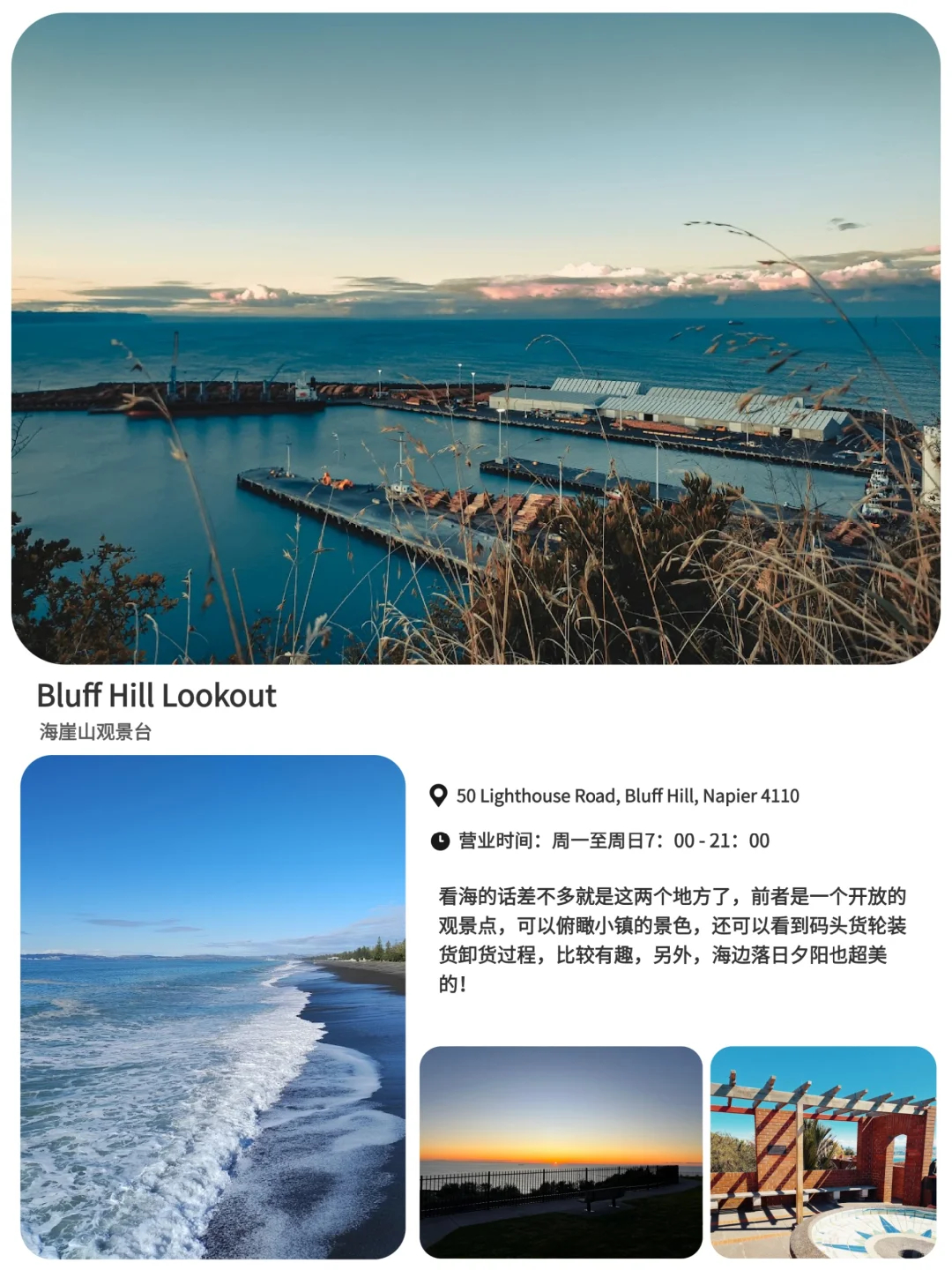 Bluff Hill Lookout & Marine Parade是欣赏海景的不二之选。前者提供开放式观景,让您俯瞰整个小镇及其充满活力的港口,特别是在夕阳下,风景更是迷人。