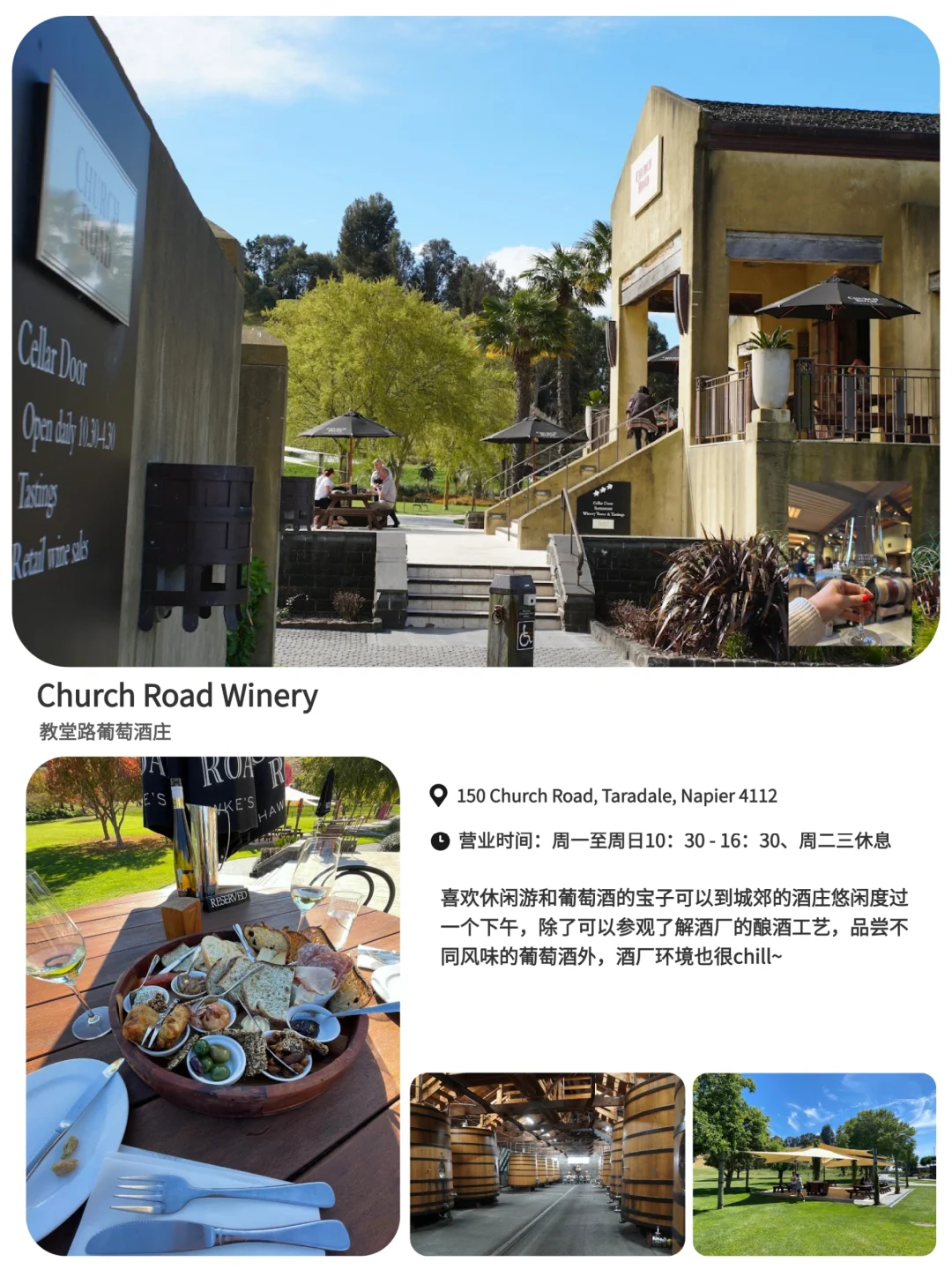 如果您热爱葡萄酒,可以到Church Road Winery度过一个悠闲的下午,参观酒厂、品尝美酒,同时享受宁静的环境。