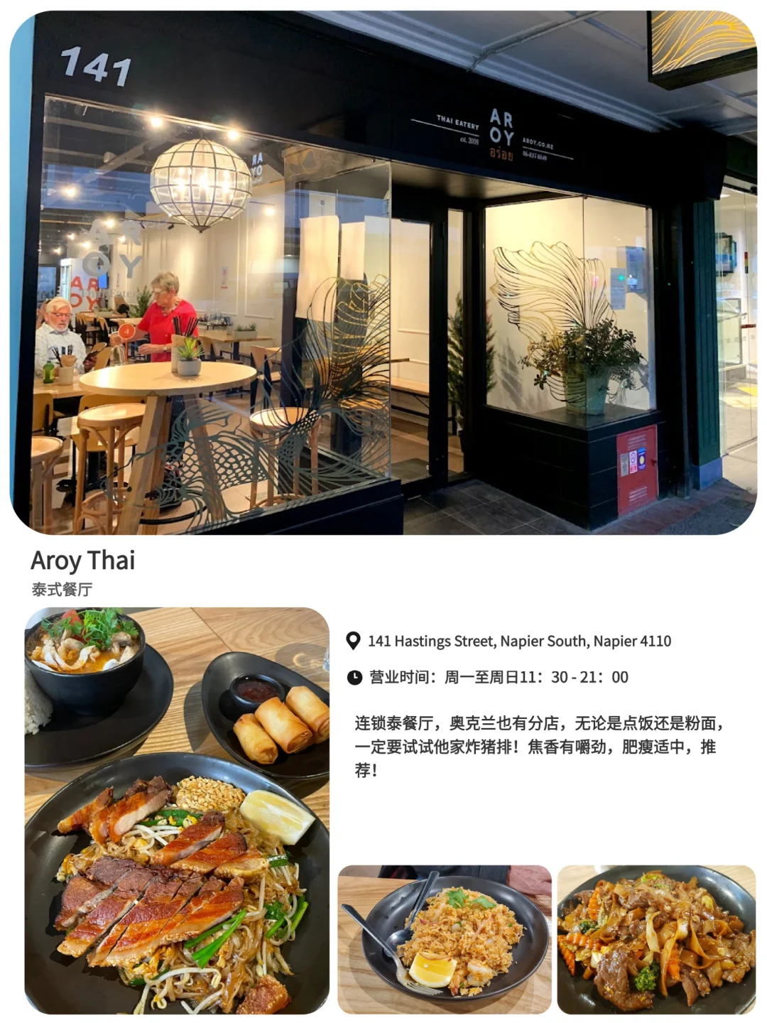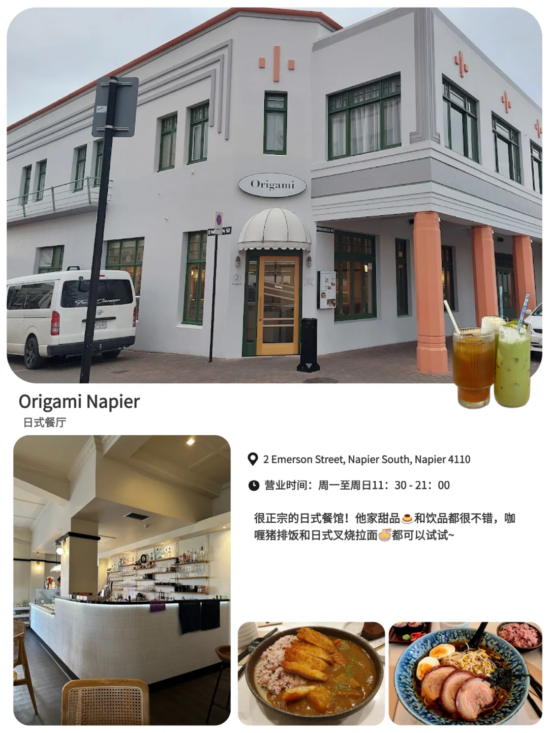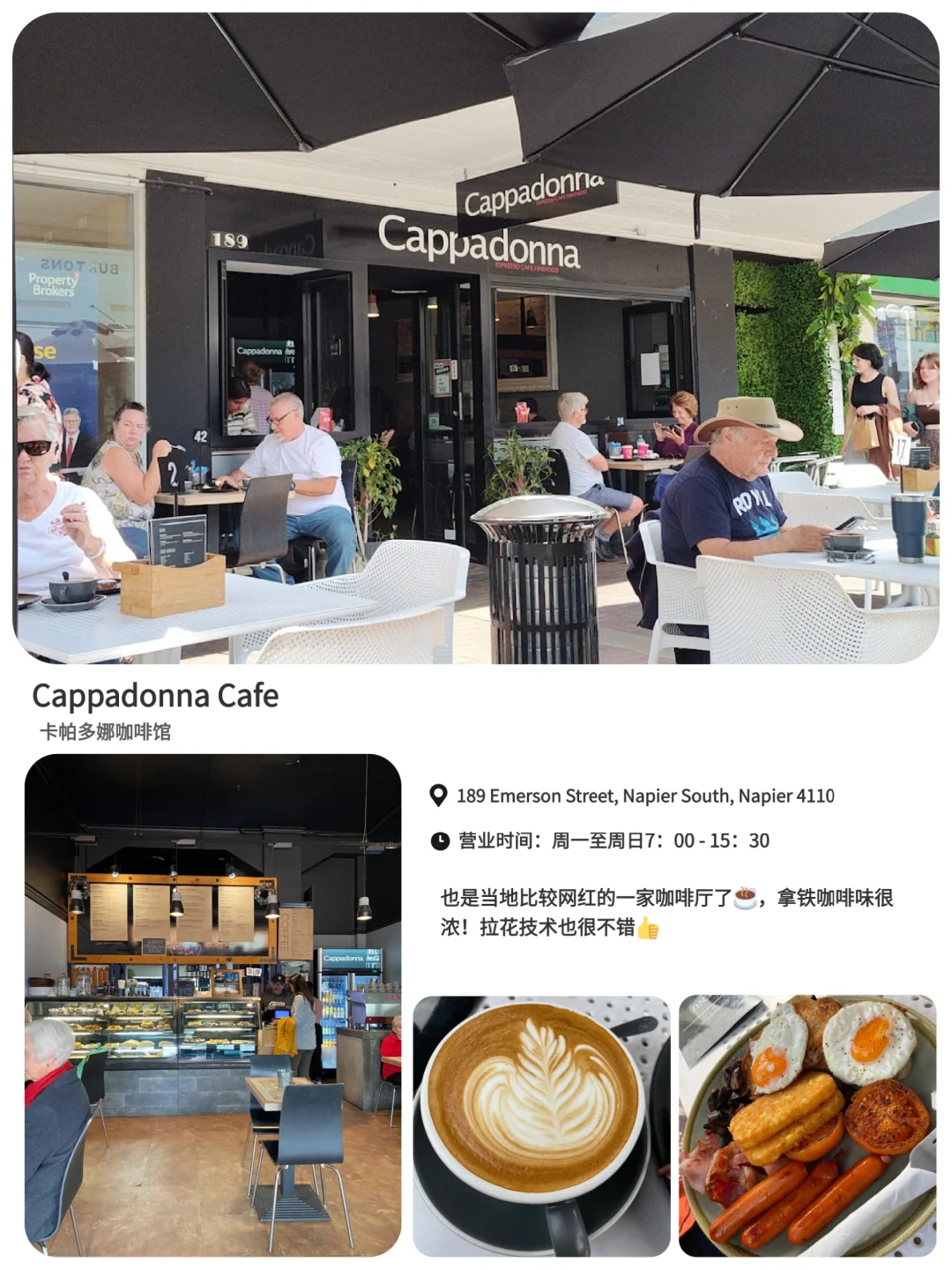 推荐美食方面,Cappadonna Cafe是一家人气咖啡厅,拉丁咖啡浓郁,拉花技巧出众。Aroy Thai是连锁泰餐厅,必试其炸猪排,焦香适口。而Origami Napier则提供正宗的日本料理,务必尝尝他们的咖喱猪排饭及日式叉烧拉面。
