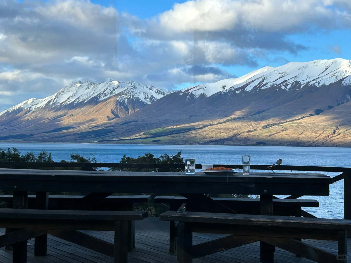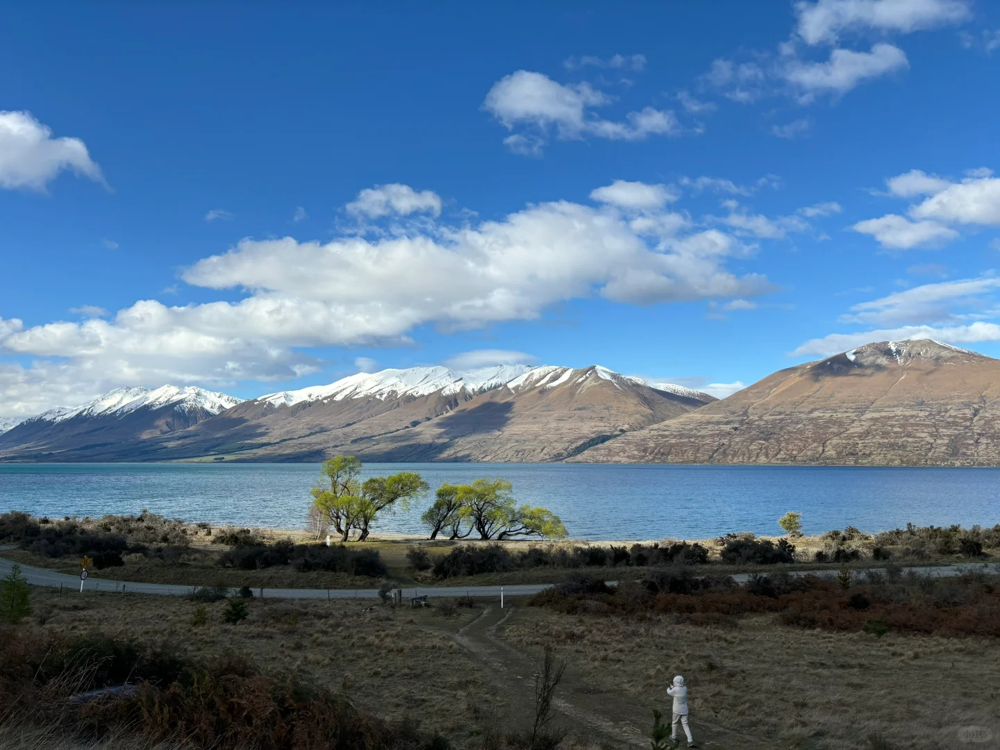 前往Lake Ohau的旅程中,沿途的雪山风景壮丽、起伏连绵,偶尔可以见到野兔在草地上欢快跳跃。这个未经开发的天然湖泊是我们旅行中最受欢迎的一站。我们选择入住Lake Ohau Lodge民宿,别致的古典装修与温馨的氛围让人倍感舒适,餐厅里温暖的木色调、中央的沙发和壁炉让人仿佛置身于本地人的家中。即使天气不佳,民宿的露天温泉也能让人放松,室内的温暖走到餐厅也让人不会感到寒冷。这里远离城市的光污染,在无乌云的夜晚,星空璀璨,甚至在房间门口也能拍到美丽的星空。我最欣赏的景象是进入民宿前需要穿过那片茂密的森林,阳光透过树梢洒下,无比美丽,仿佛步入了童话世界。最后,依依不舍地与湖面、美丽的雪山以及Lake Ohau道别。