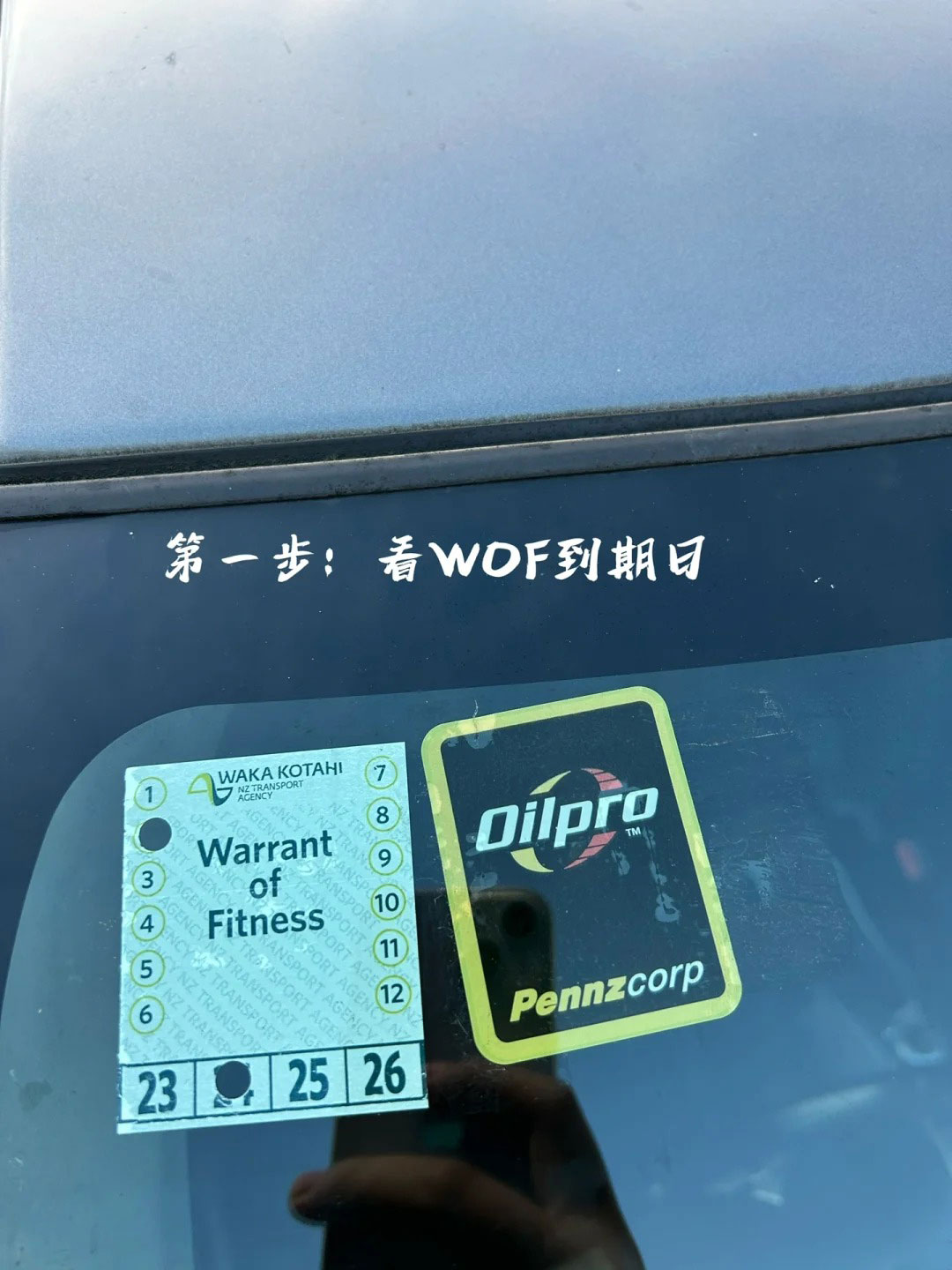 2. 检查车窗左上角WOF贴纸年检日期;路税的时间也可以一起询问(不过这个价格不贵, 后期自己买也可以的)