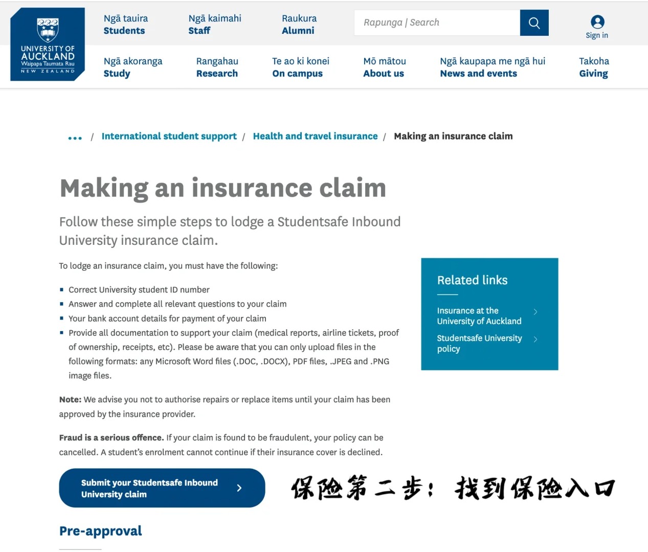 以奥克兰大学的保险流程为例